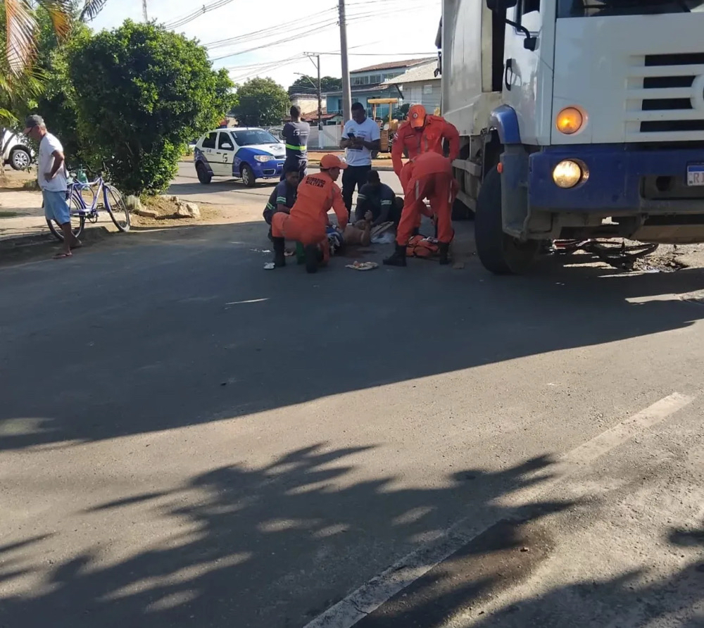 Na manhã deste sábado (03), um ciclista ficou ferido após colidir com um caminhão de lixo da empresa FG Soluções Ambientais, no bairro Jardim Savoia, zona norte de Ilhéus.