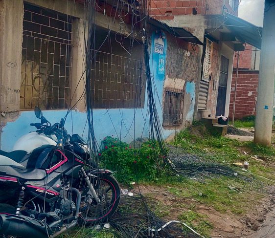 Moradores denunciam provedores de internet por deixarem cabos descartados nas ruas após troca de postes no bairro Teotônio Vilela.